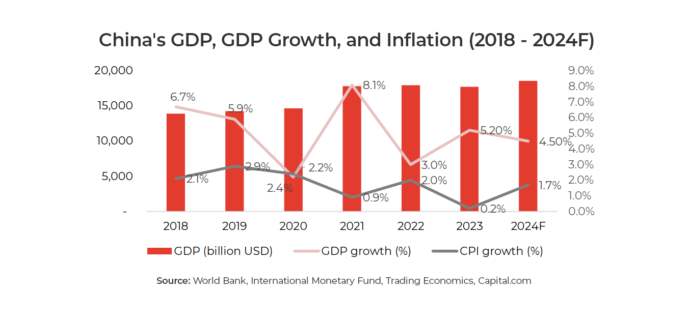 While the rest of the world’s economies struggled to recover in the turbulent year of 2023, China’s economy stood out as a model of resilience. After nearly three years of strict “zero Covid” pandemic measures, China’s GDP recovered to grow 5.2% in 2023, hitting the government’s official target. Given the difficult global economic environment, this expansion would be considered quite a significant pick-up compared to its poor performance of 3% growth in 2022 and the initial unoptimistic forecast at 4.4% of IMF.
