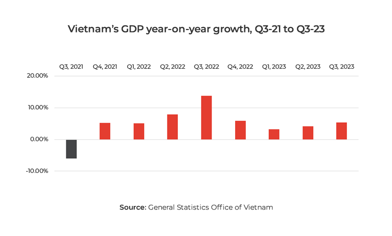 Vietnam’s GDP expanded 5.33% year-on-year (YOY) in Q3 of 2023, pointing to 3 consecutive quarters of recovery.