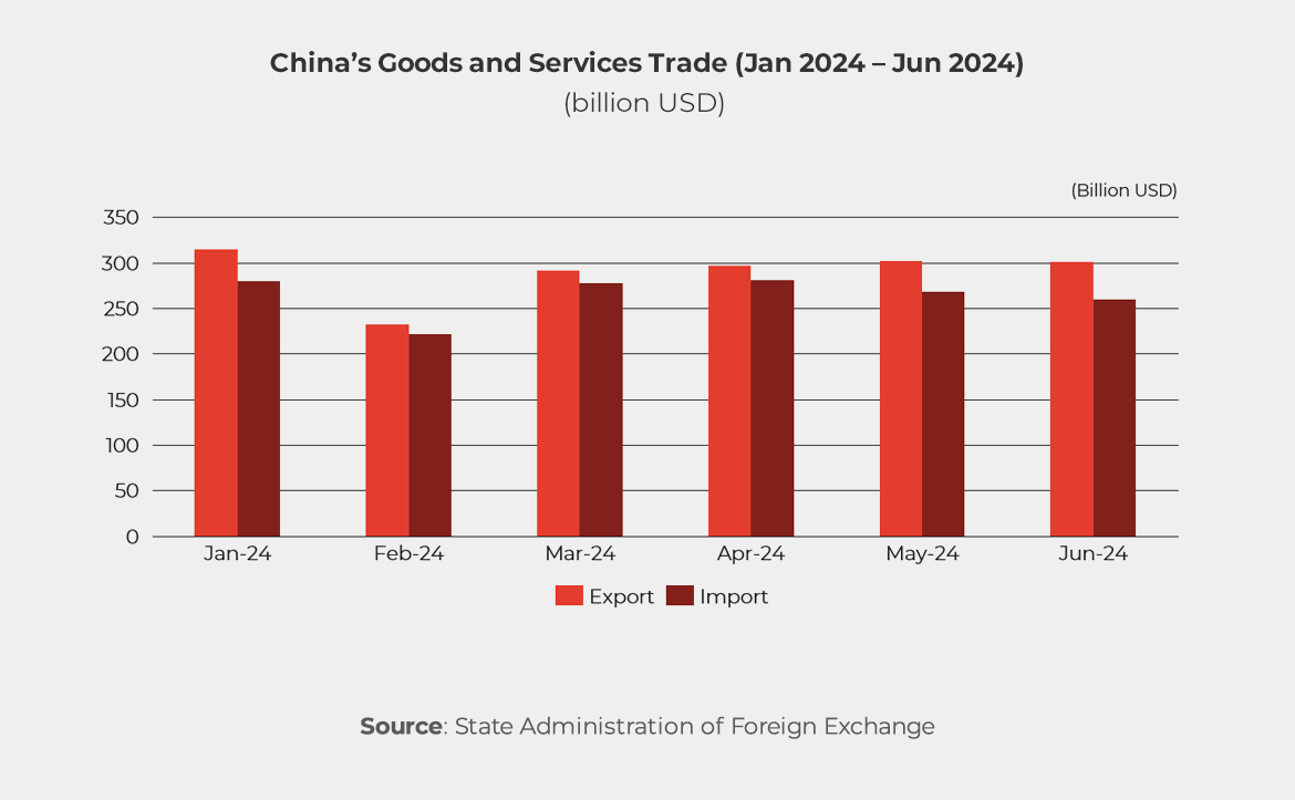 In the first half of 2024, GDP grew by 5.0% year-on-year. In the second quarter, China’s GDP growth slowed to 4.7% year-on-year, with a quarter-on-quarter increase of 0.7% compared to the first quarter of 2024.